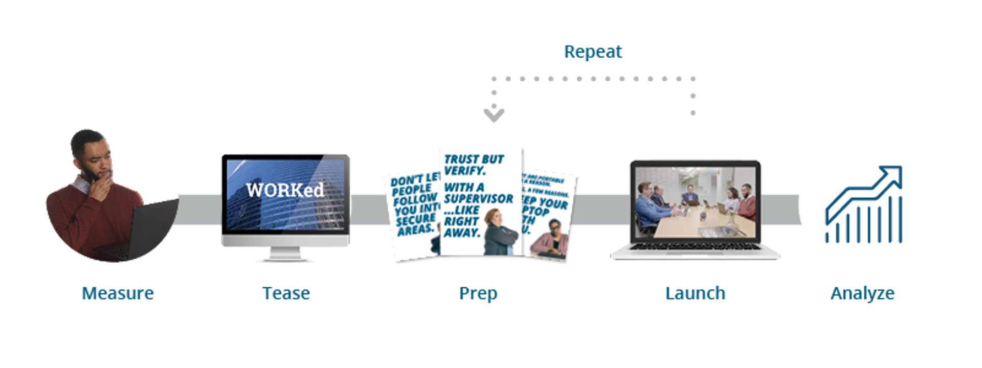 Keep employees engaged in cybersecurity year-round with pre-built campaign kits. Our awareness campaigns supplement your compliance-based training program with entertaining training modules, eye-catching posters, a suite of training resources and a playbook to construct a multi-month campaign.