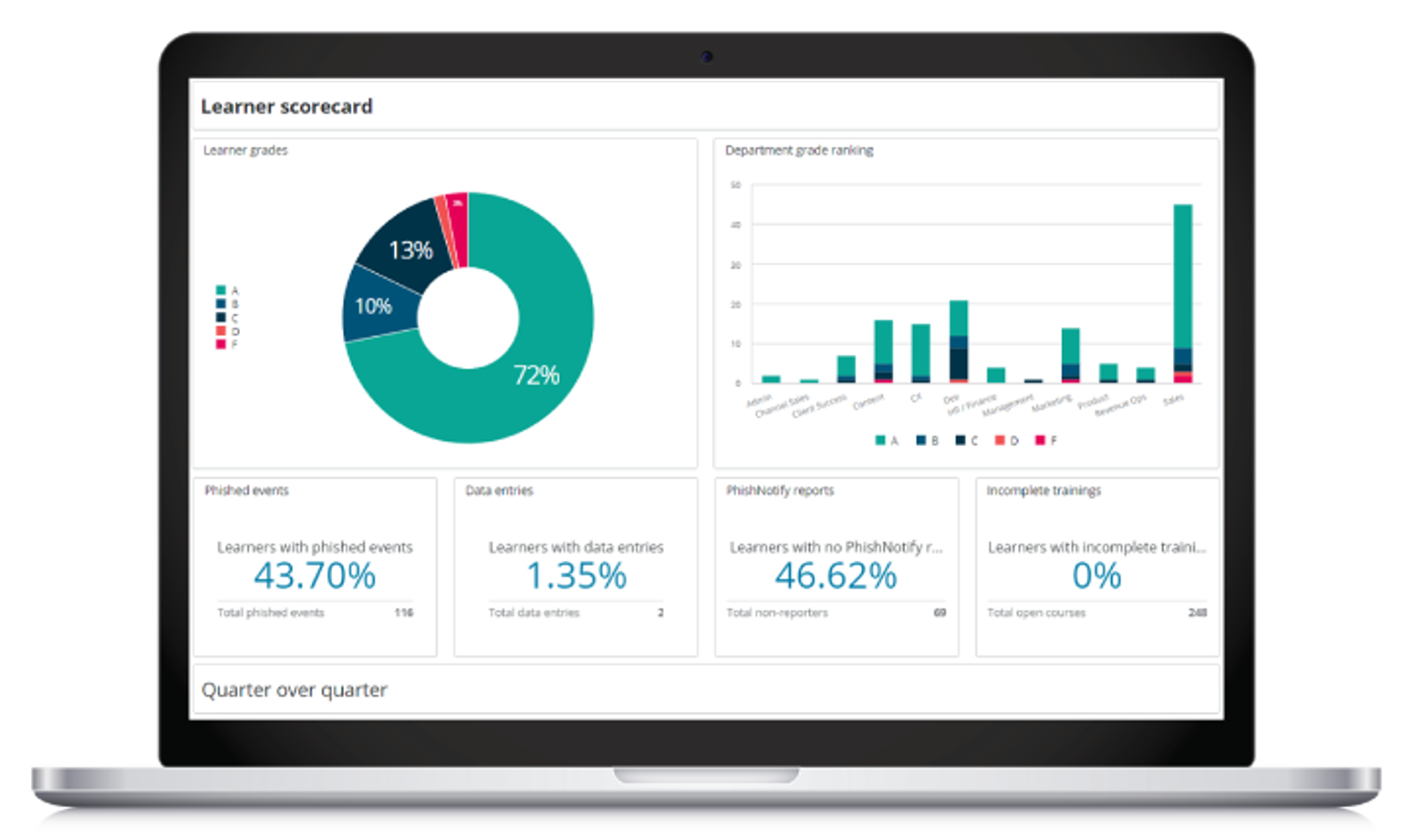 - Executive-level metrics curated for your leadership team to provide updates, prove the success of your training efforts and highlight potential risks.