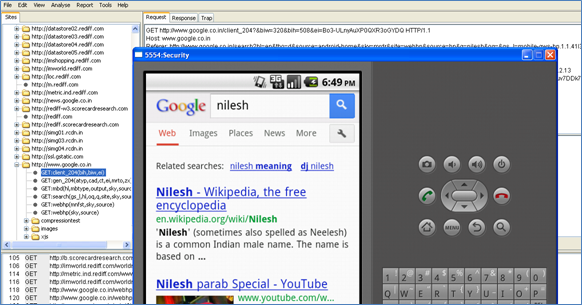 We need to set up local web proxies (e.g. Burp, Paros) to intercept the traffic by modifying the Internet setting in Android by clicking on Settings->Wireless & Network Settings-> Mobile Networks -> Access Point Names-> Internet-> Proxy Name (PC's IP address) & Port [Fig-5]. The same settings we need to specify in Burp as well: provide the host IP and port no. as above. Now the proxy should be up and running and successfully captures any request [Fig-6].