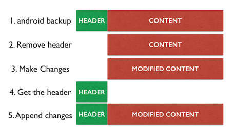 Let us get the header part of the actual Android backup file and append the new tar file to it.