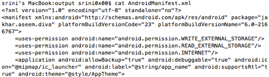 $ java -jar apktool_2.0.3.jar d diva-beta.apk -o output