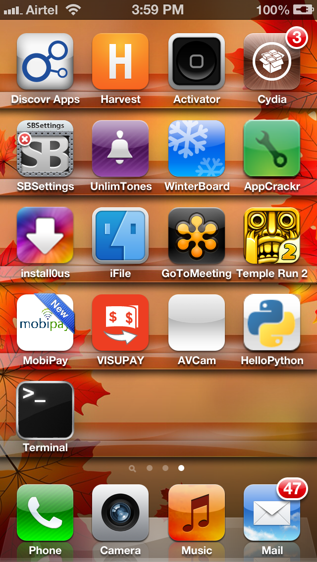 Once it is done running the exploit, it will install Cydia and its packages list on the device. Cydia is a GUI that allows you to download software packages and other apps on your jailbroken device that you would normally not find on the App store. Mostly all the jailbreak softwares install Cydia on your device by default. You can call Cydia the App Store for jailbroken devices.