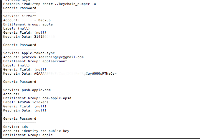 - Keychain-Dumper https://github.com/ptoomey3/Keychain-Dumper