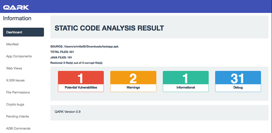 Additionally, it provides some adb commands to exploit the issues identified. Another nice feature of QARK to mention is its ability to provide nice reports.