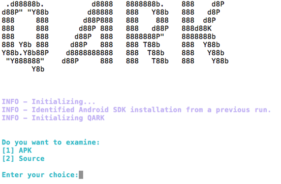 This will launch an interactive QARK console as shown below.