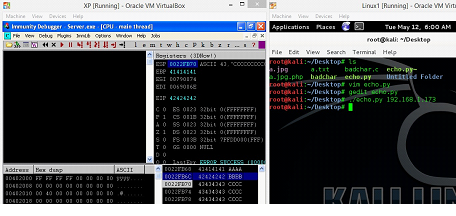 In this article, we have already replaced the EIP value with the BBBB. Let's run the Python script again and we get following output on the screen of machine A.