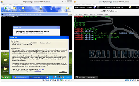 - We will be using Windows XP Operating System as victim machine in which we will run server program; throughout this article, we will be using this machine as machine A.