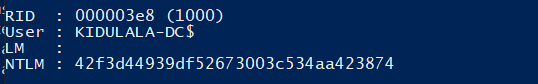 - Below is the NTLM hash of the machine account of the DC.