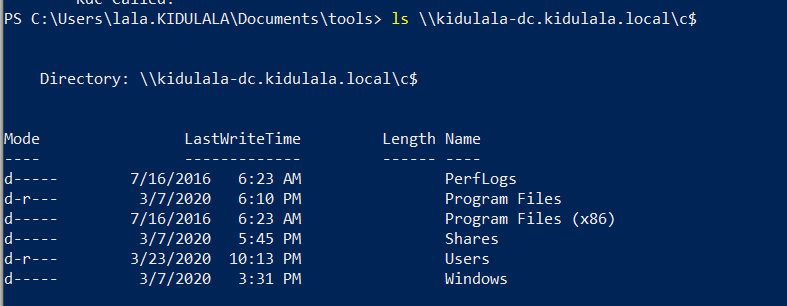 - We can access the CIFS service on DC in the current session and we successfully do that.