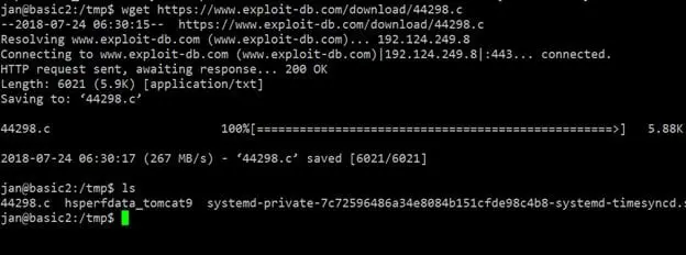 I found the exploit in the very first result on Google. There was a local exploit available on Exploit DB. So I downloaded the exploit on the target machine by using the wget utility, which can be seen in the following screenshot.