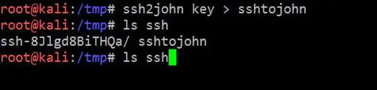 Command Used : ssh2john key > sshtojohn {Here 'key' file contains the private key which we found on the target machine.}