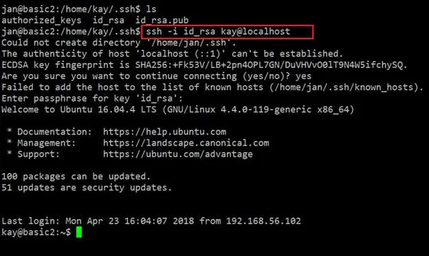 John has cracked the passphrase which can be seen in the highlighted area in the above screenshot. So let's try to log in with the "kay" user.