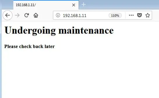 Let's explore the HTTP port first. I opened the target machine IP on the browser, but it only showed a webpage with some maintenance error. It can be seen in the screenshot given below.