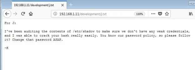 Directory listing was enabled in the "development" directory, which can be seen in the above screenshot. There were two txt files available, too. Let's read the text file.