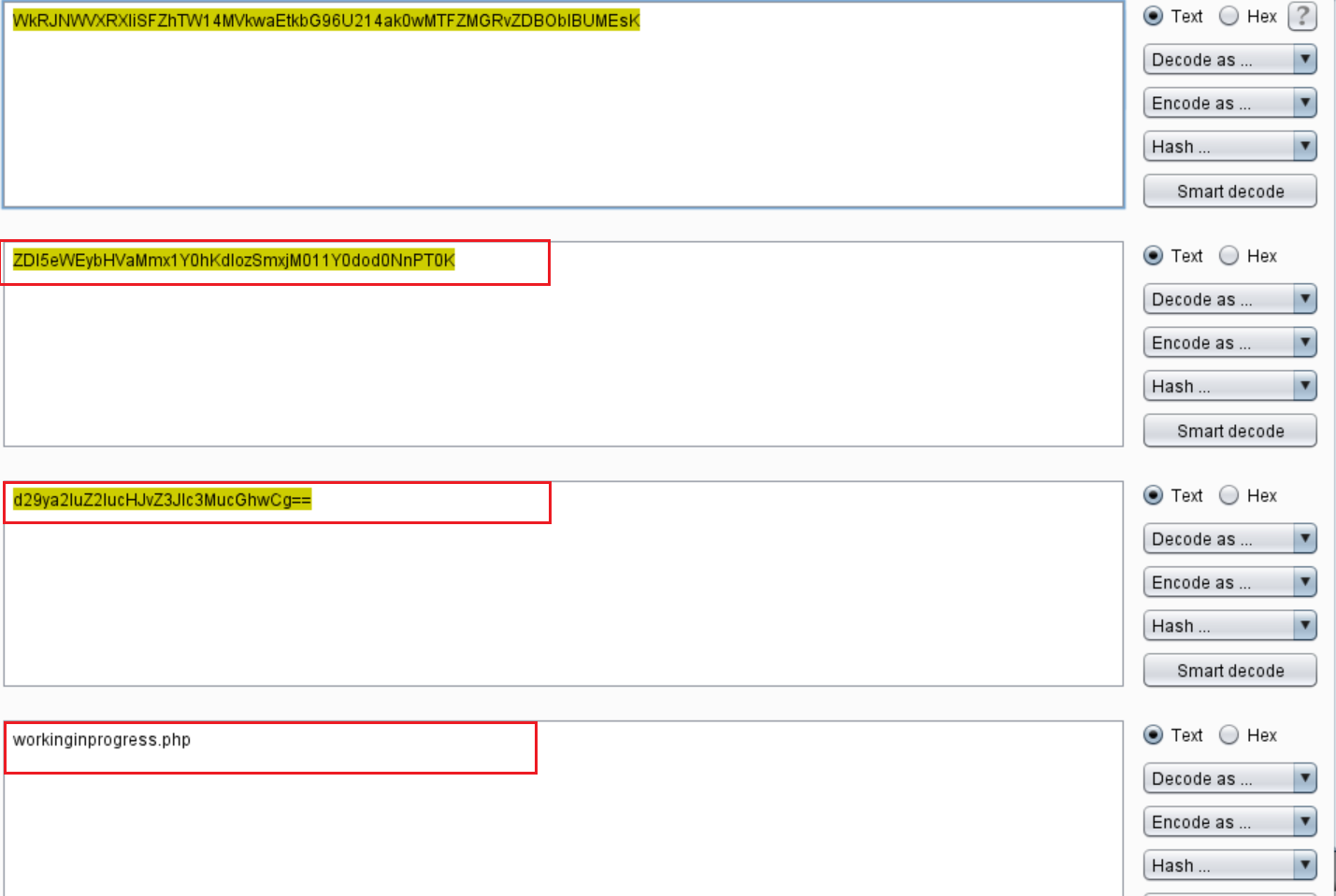 As we can see, the decoded string “workinprogress.php” seems to be a file on the target machine web application. Let’s open the file on the browser and see if it works.