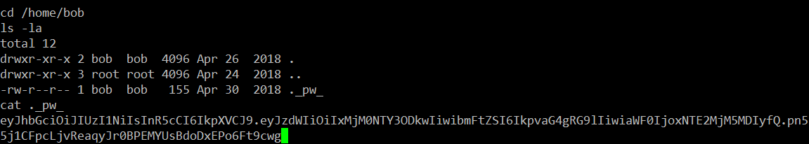 <<./jwtcrack eyJhbGciOiJIUzI1NiIsInR5cCI6IkpXVCJ9.eyJzdWIiOiIxMjM0NTY3ODkwIiwibmFtZSI6IkpvaG4gRG9lIiwiaWF0IjoxNTE2MjM5MDIyfQ.pn55j1CFpcLjvReaqyJr0BPEMYUsBdoDxEPo6Ft9cwg>>