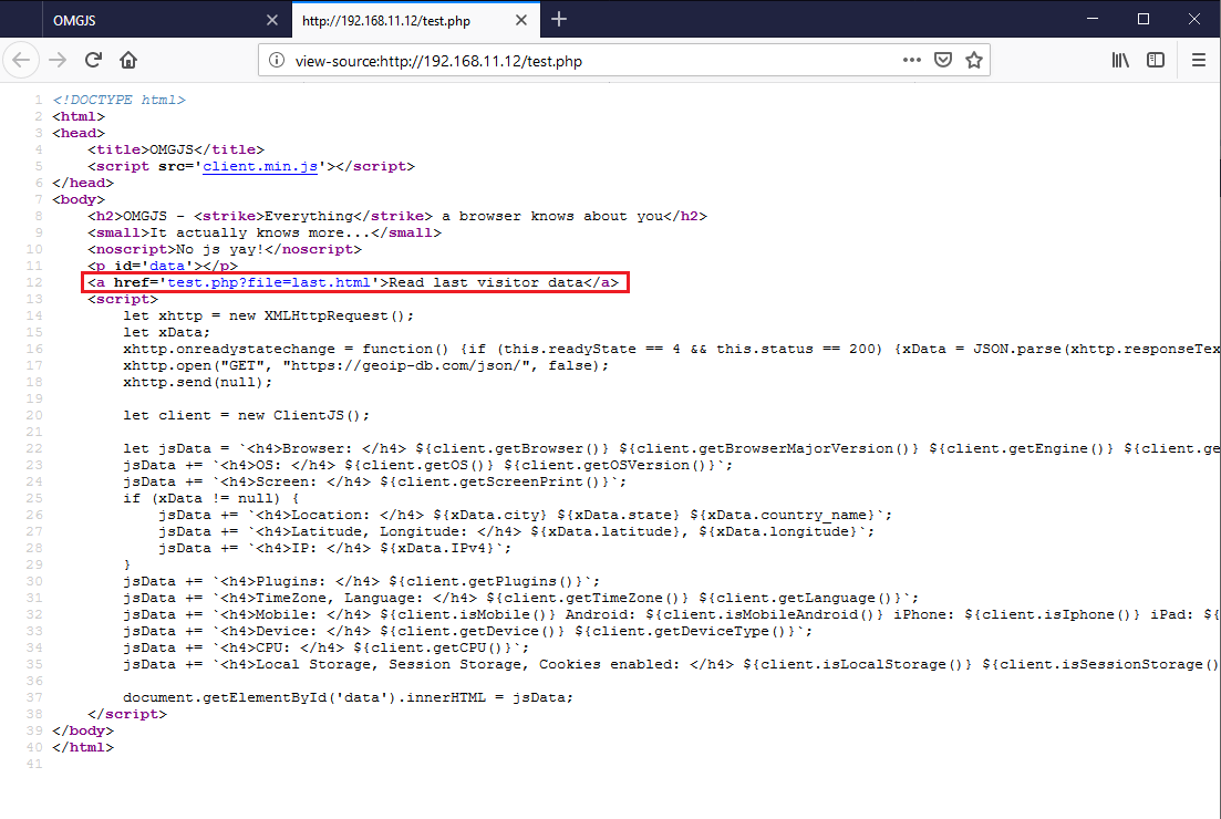 We can see that this file is used to return the browser information. However, this information does not make any difference for us, because we have to hack the target system. I checked the HTML content of the page and I found something very interesting: