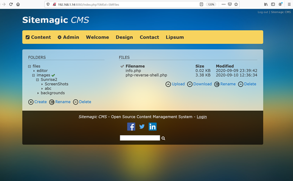 In part 1, we identified a web application developed in Sitemagic CMS and were able to log in to the admin panel by using the identified password from step four. We will continue from this step and get to the root of the target machine.