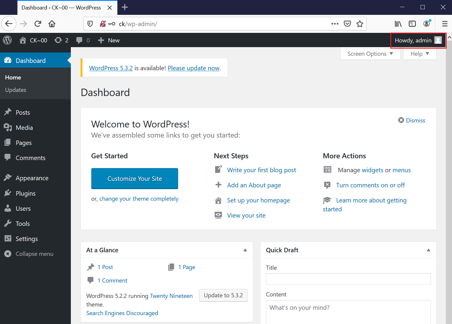 We also discovered that there is a WordPress website running on port 80. As we all know, WordPress websites are a host to many vulnerabilities if not upgraded on regular basis. In the next step, we will be checking the WordPress website for any loopholes.