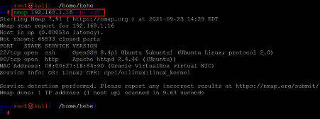 Command used: << nmap 192.168.1.16 -p- -sV >>