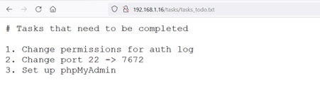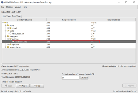 The file contains information about some tasks to be performed on the target machine. We have not enumerated all the data, so it is difficult to relate anything to these tasks. We took note of this information for further use. We have already conducted a Dirb scan that identifies any other entry points. Let us run another file enumeration tool called Dirbuster, which conducts a detailed scan to identify hidden directories.