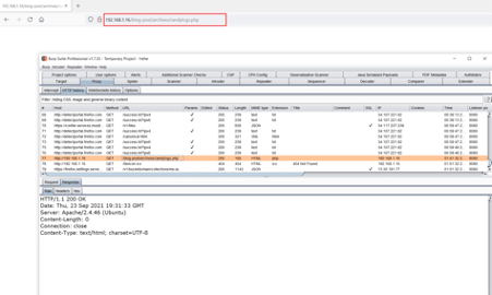 The folder blog post did not contain any useful functionality. However, there is an interesting file named 'randylogs.php.' We configured the burp intercepting proxy for analyzing the request in detail. The request as intercepted by the burp suite can be seen below.