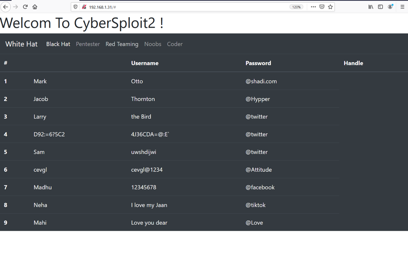 As we can see in the above screenshot, there are a lot of usernames and passwords shown on the webpage! As of now, we do not know whether these would be useful or not, so we took of note of them for later use.