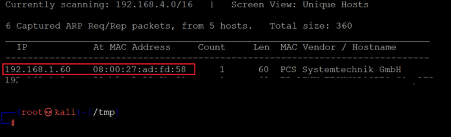 Note: the target machine IP address may be different in your case, as the network DHCP is assigning it.