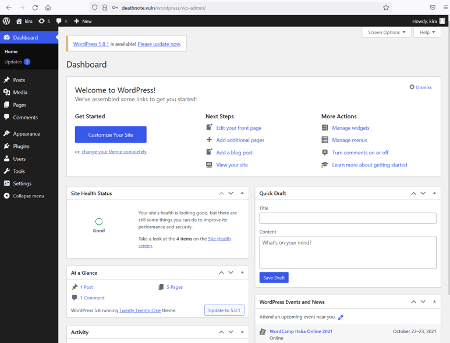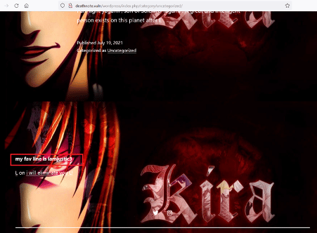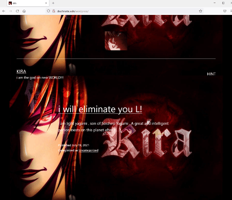 After a few attempts, the username 'Kira worked on the login page, and the password was also easily guessed from the hint messages we had read earlier. We have WordPress admin access, so let us explore the features to find any vulnerable use case.