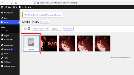 While exploring the admin dashboard, we identified a 'notes.txt' file uploaded in the media library. Let us open the file on the browser to check the contents.
