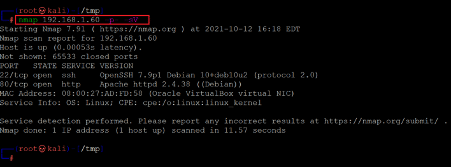 Command used: << nmap 192.168.1.60 -sV -p- >>