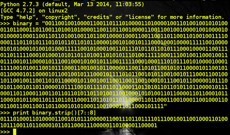 print binary.strip()[7::8]