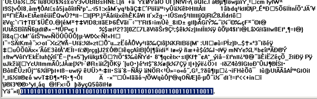 Note: Alternatively, you can open this image file in 'notepad.exe' to view the raw ASCII dump and scroll to the end of the file to locate the binary sequence that stands out [Figure 6].