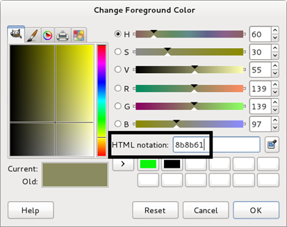 Once more, we are provided with an image file and we need to extract the password out of it. Our first clue is that the image contains vertical lines separating certain colors. The first intuition is that each of these colors may represent a letter in the password. We need to determine how the alphabets were mapped to these particular colors. To reverse the process, we open the given image in an image editor such as GIMP. Next, we use the 'color picker' tool in GIMP to study the particular colors. For example, GIMP shows us the following details corresponding to the first color from the left [Figure 8]. Notice the HTML notation of the color.
