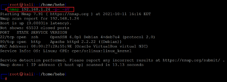 Command used: < nmap 192.168.1.24 -p- -sV >>