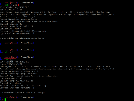 As we already know, the vulnerable parameter from the previous step. So let us Post the request into a text file in the Kali machine so that we can run the SQL on this.