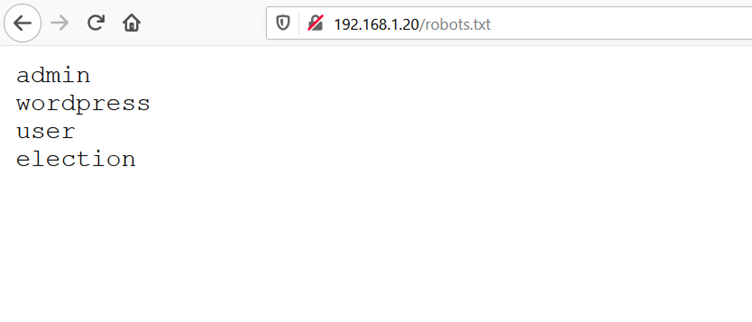 We tried some default database usernames and passwords to log into the phpMyAdmin, but none of them work here. So, we opened robots.txt file to see if it has any useful information. The output of the robots.txt can be seen in the following screenshot: