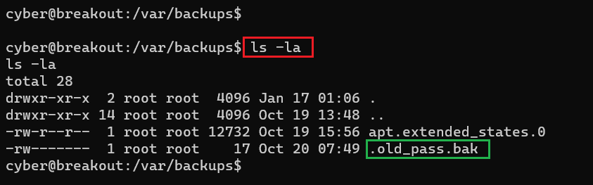 Command used: << cat .old_pass.bak >>