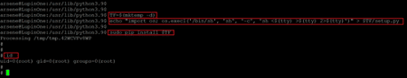 We confirmed the current user by running the id command and found that the current user is Arsene. We checked the sudo permissions for this user by running the ‘sudo –l’ command and found that the pip utility can be run as root. We will exploit the pip utility to gain root access in the next step.