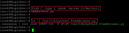 We used the find command to identify files with full permissions on the target machine. We identified a file named ‘webbrowser.py’, which is another python script. We checked the user ownership by running the ‘ls –l’ command and found that the root user owns it.