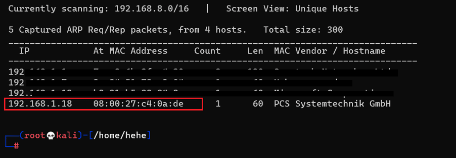 Note: The target machine IP address may be different in your case, as the network DHCP is assigning it.