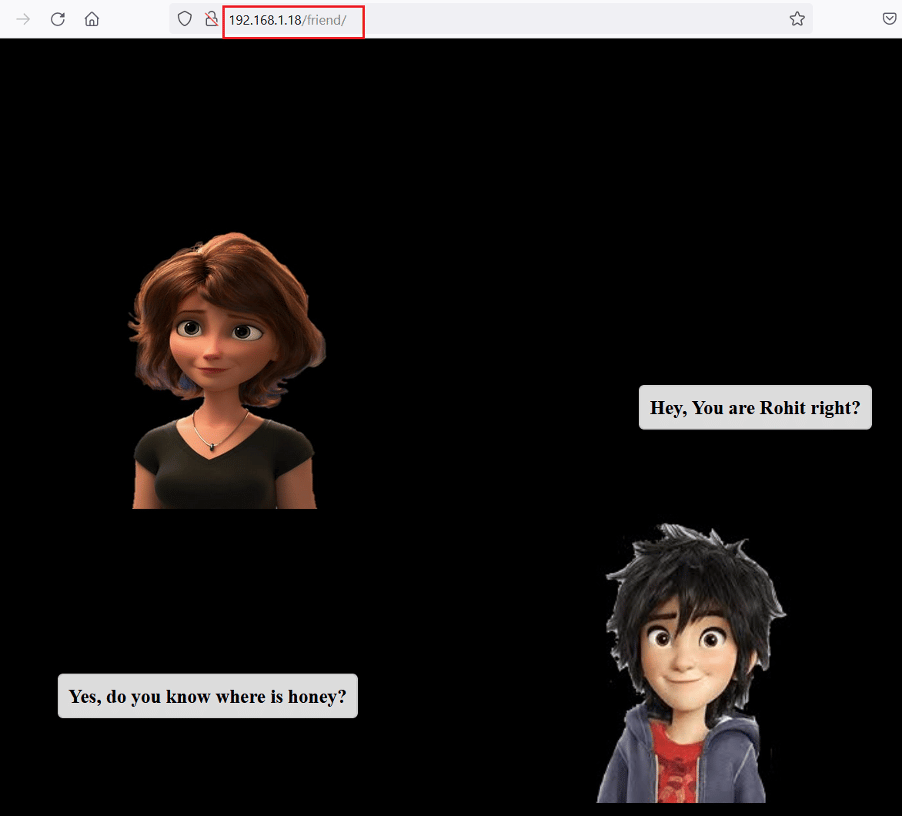 The Dirb scan identified a few directories on the target machine, exploring further. We also identified a directory listing enabled on the target machine. Let us open the directory '/friend/' on the browser, seen below.