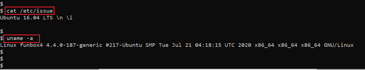 We have the www-data user access on the target machine. However, the target was to get the root access and read the flag file. To do this, we ran commands to identify the operating system and kernel version which can be seen in the below screenshot.