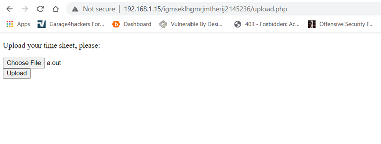 As we can see in the above screenshot, we first used the wget utility to download the exploit; after that, we used the gcc compiler to compile it and the compiler has generated the executable file with the default name a.out. Now we have to move this executable to the target machine. But the target machine does not have the wget utility, so we have to identify the different ways to transfer the exploit on the attacker machine. We know the application having the file upload functionality, so we used that functionary to upload the file on the target system.