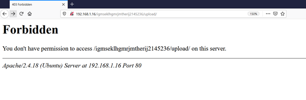 As can be seen in the highlighted area of the above screenshot, a new folder upload has been identified by the drib. We checked this folder in the browser but again we get a "Forbidden" error.