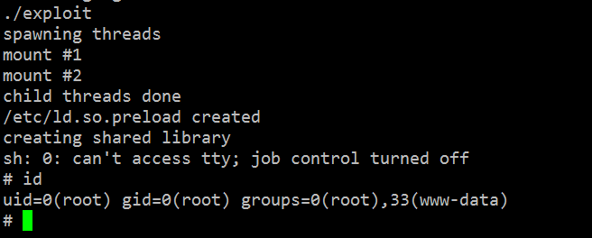 After saving the changes in the exploit, we need to compile it again with the CC complier and try to execute it. It can be seen in the following screenshot: